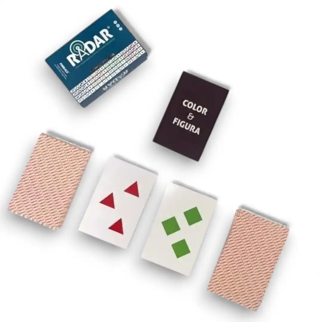 Dividir el mazo por la mitad y colocarlos boca abajo en el centro de la mesa. Dar vuelta dos cartas a la vez y ver si coinciden en la modalidad de juego elegido de las cartas combinatorias. El primero en ver la coincidencia, grita RADAR y se lleva el par.