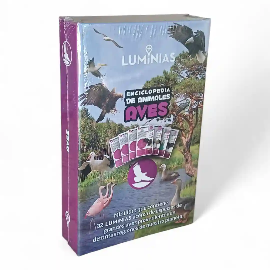 | Luminias Aves contiene un mini libro con 32 fichas infográficas, en este nuevo formato de tapa dura. Es un juego de cartas enciclopédico que se basa en fichas técnicas muy completas que brindan un contexto comprensivo para ir asimilando conocimiento de forma divertida mediante el juego en familia.